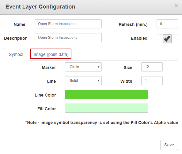 - Click Image (point data) in the Event Layer Configuration panel.