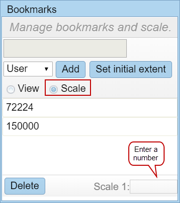 3. Navigate the map to the desired scale, or enter a number in the text box. If you enter a number, the map zooms in or out to the scale you entered.